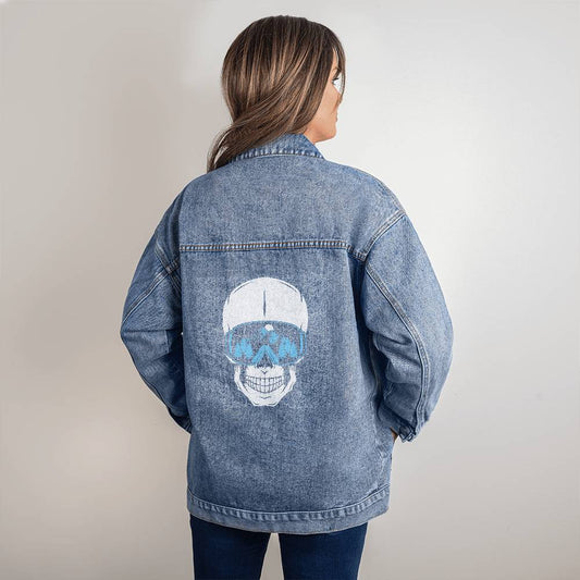 Ski Skull Mountains in Sight Apparel Collection -Jean Jacket Perfect for the Ski Bums Wardrobe on the Slopes