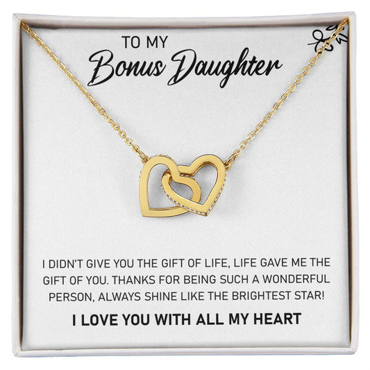 To My Bonus Daughter, Always Shine Like The Brightest Star - Interlocking Hearts Necklace