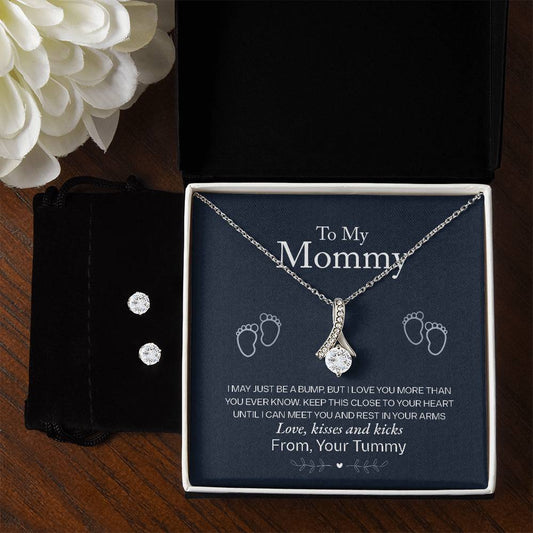 To My Mommy, Love From Your Tummy - Alluring Beauty Necklace and Earring Set