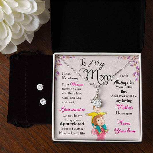 To My Mom, I Will Always Be Your Little Boy - Alluring Beauty Necklace and Earring Set