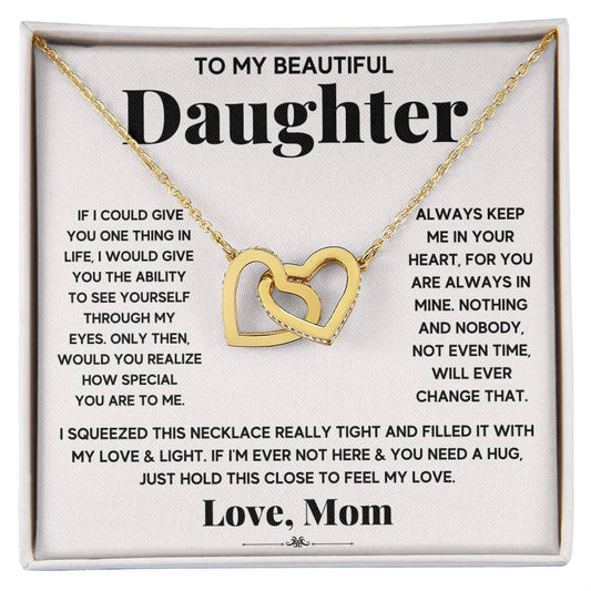 To My Daughter, I Will Always Carry You In My Heart - Interlocking Hearts Necklace