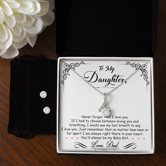 To My Daughter, I_m Always Right Here In Your Heart - Alluring Beauty Necklace and Earring Set