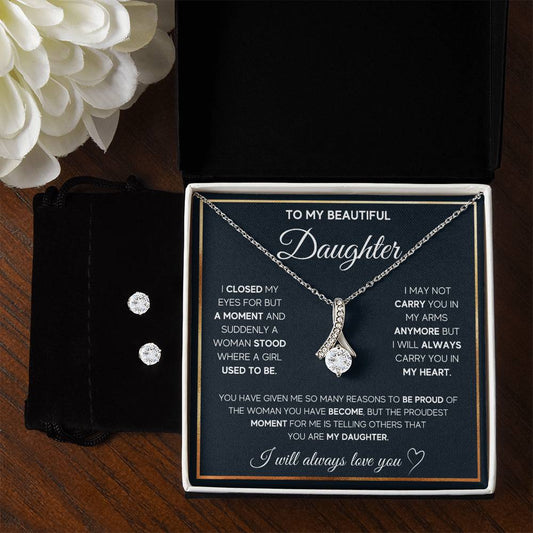 To My Daughter, I Will Always Carry You In My Heart - Alluring Beauty Necklace and Earring Set