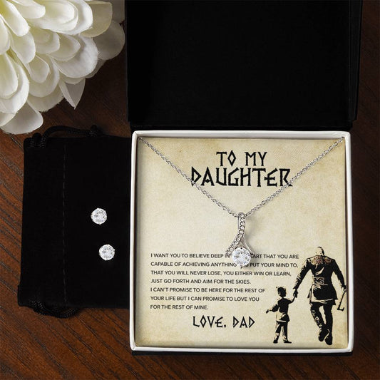 To My Daughter, You Will Never Lose - Alluring Beauty Necklace and Earring Set