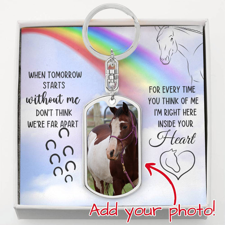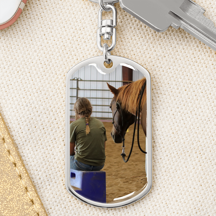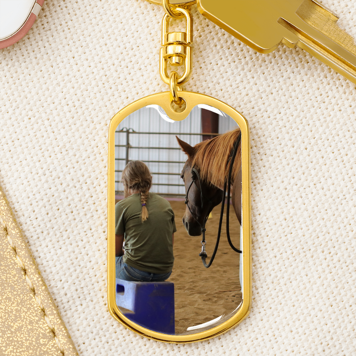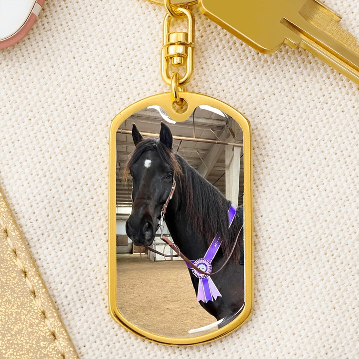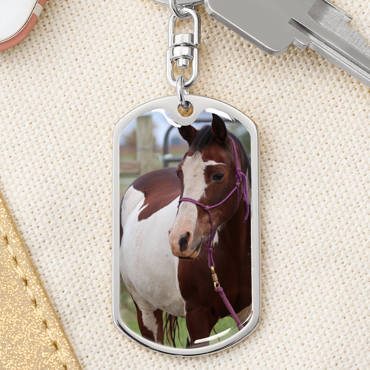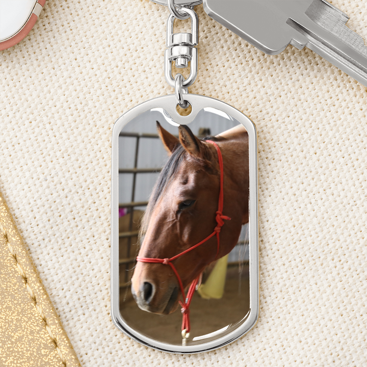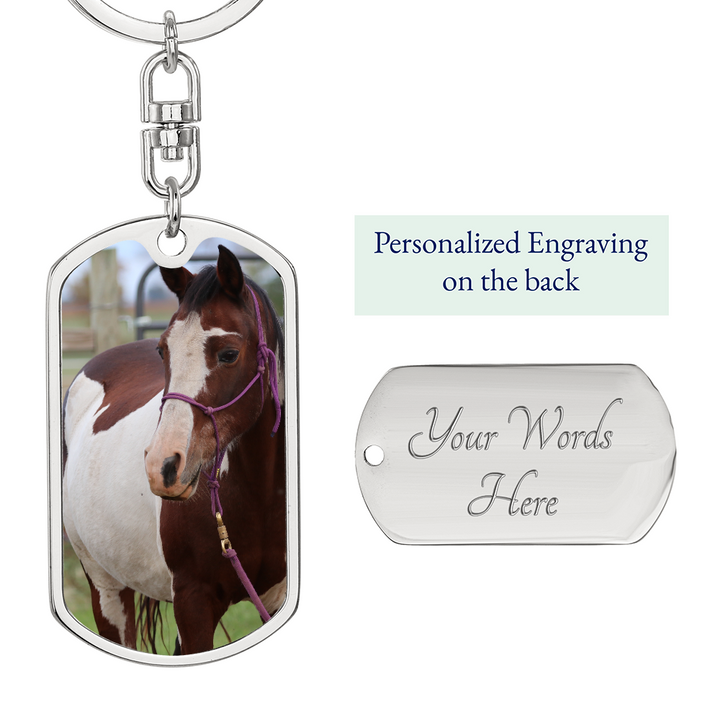 Carry a piece of your heart everywhere you go with our Horse Memorial Key Chain. This personalized keepsake connects you with the cherished memories of your beloved equine friend. Crafted with love, each key chain comes with a customizable picture that can be adorned with your most treasured horse's picture, ensuring you feel their presence in every moment.